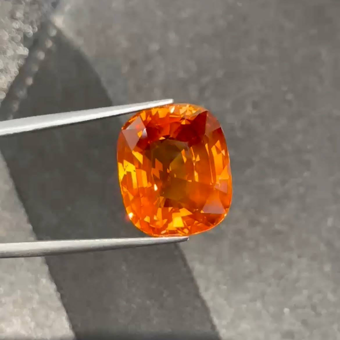 26.09 Carats GRS Certified Orange Sapphire Cushion Cut Natural Sri Lankan Gemstone – A truly rare treasure, this exceptional 26.09-carat Orange Sapphire from Sri Lanka radiates a warm, fiery brilliance that captivates the eye. Certified by GRS for authenticity and quality, its cushion cut enhances the gem’s rich orange hue and dazzling sparkle. Known for symbolizing creativity, energy, and prosperity, this sapphire makes a remarkable centerpiece for collectors or a statement luxury jewel. A gemstone of unmatched elegance and value.
