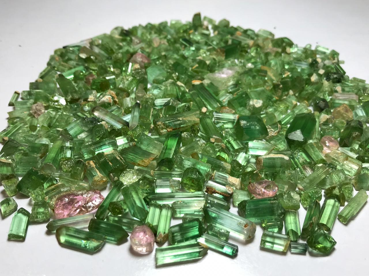 Beautiful Facet Rough Green Tourmaline from Jaba Mines Kunar, Afghanistan at Gandhara Gemstones. A lot of facet rough and Crystals of Tourmaline from which one can some Faceted gems while the Crystals can be used for wire wrapping jewellery.