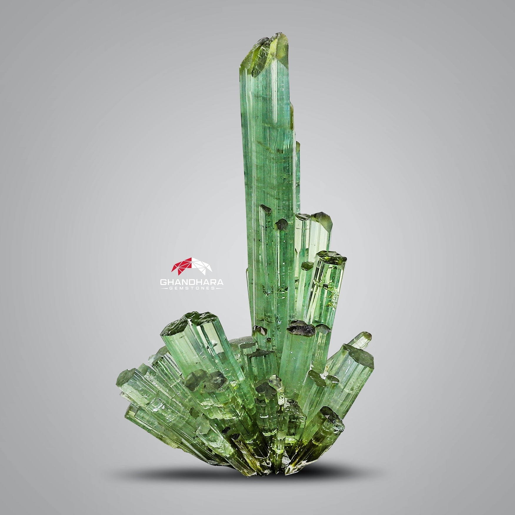 Presenting this beautiful and robust cluster of mint green Tourmaline with pencil pointed termination. The main feature is crystal shooting out of well-formed secondary crystals. It has marked transparency with vibrant coloration and a vitreous luster. The primary crystal has perfect top termination with one lock fit repair. The secondary crystals are well-crystallized pop up the main crystal. It's an indeed attractive example in such aesthetic formation from the Jabba Mine, Kunar, Afghanistan.