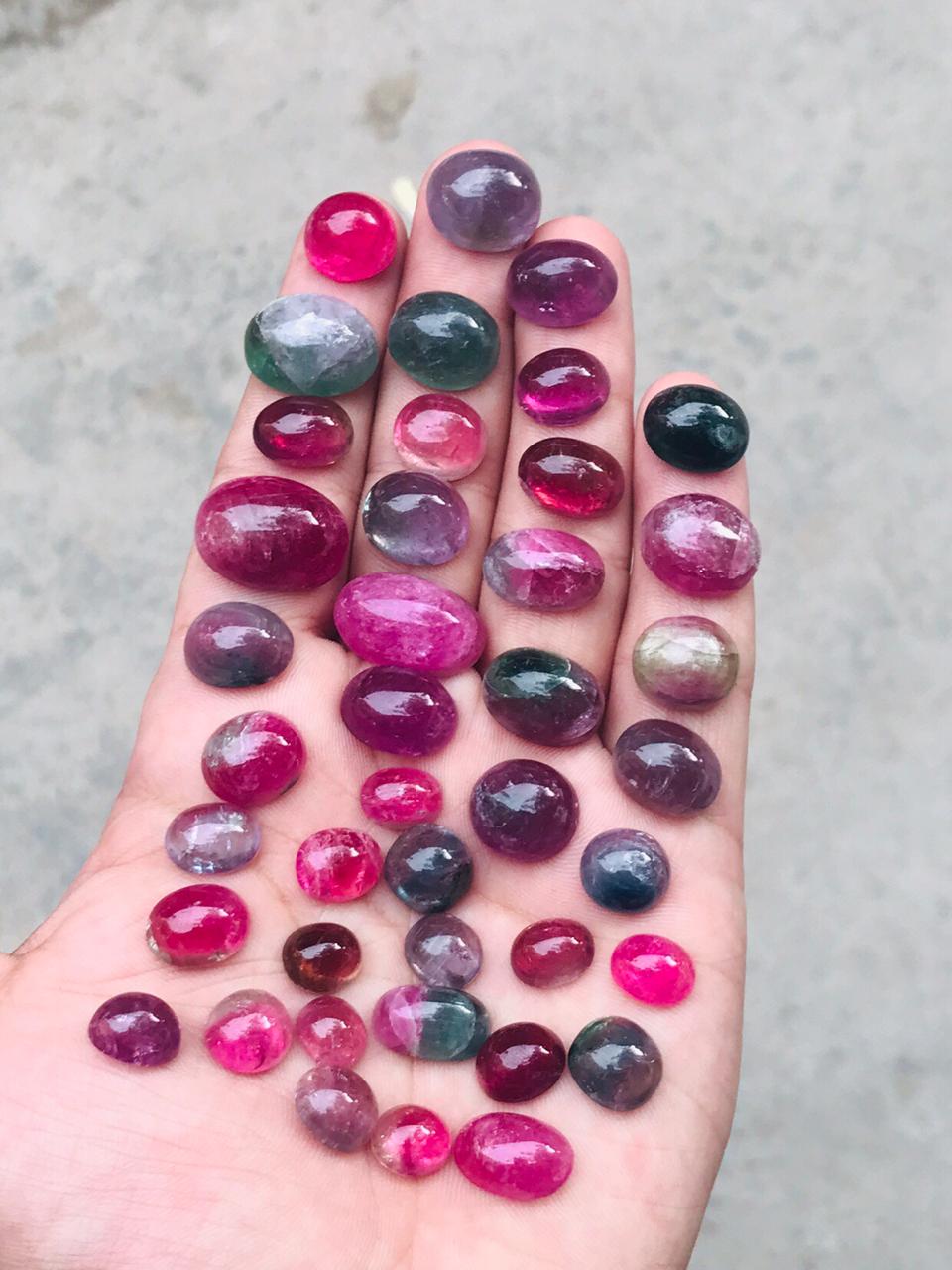 Beautiful Green and Pink Tourmaline Cabochons out of the mines of Kunar, Afghanistan. All the pieces are very beautiful. You can make beautiful Necklaces or rings. It is Untreated and Natural.